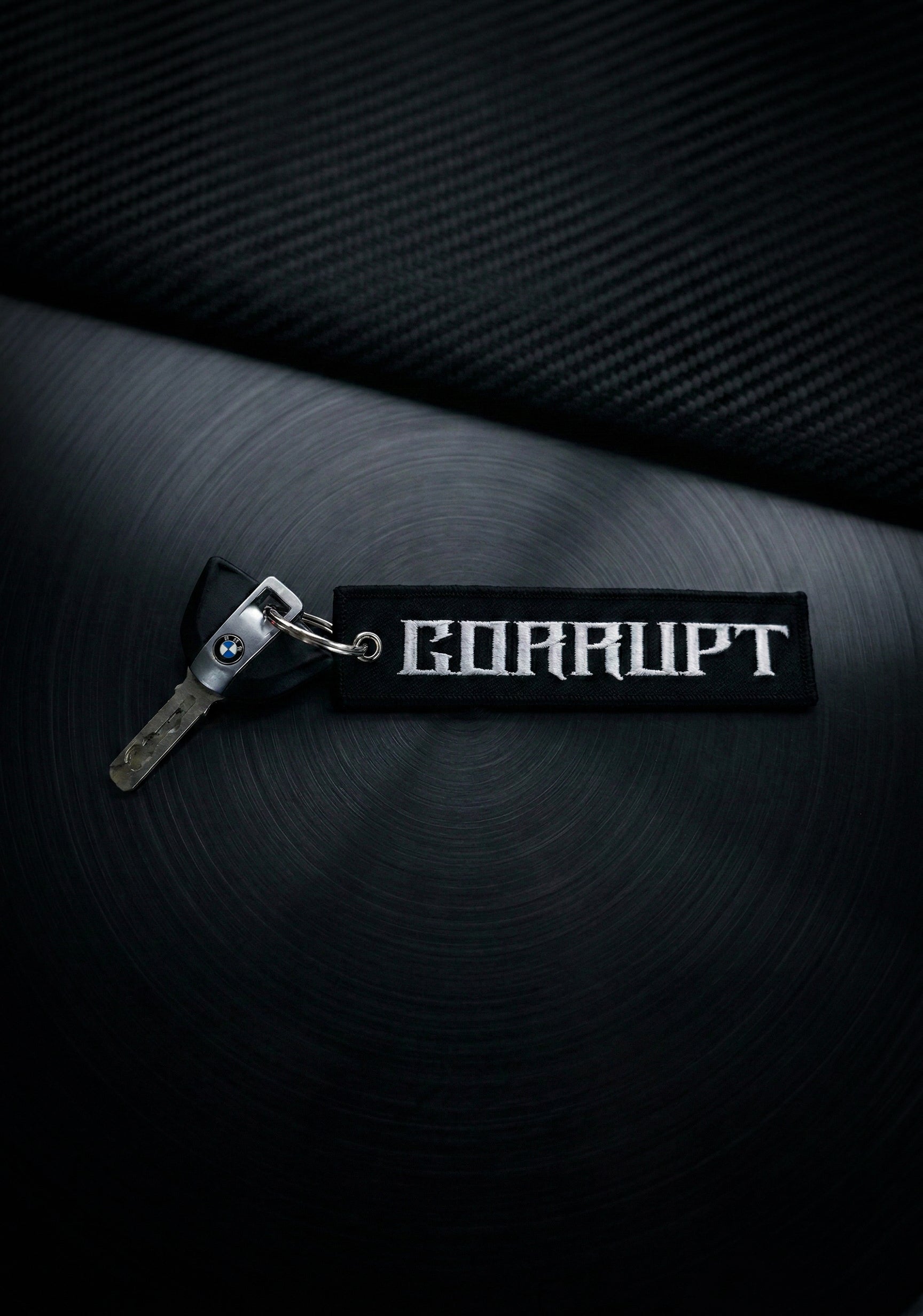 ★ Premium embroidered flight tag keychain with bold CORRUPT lettering